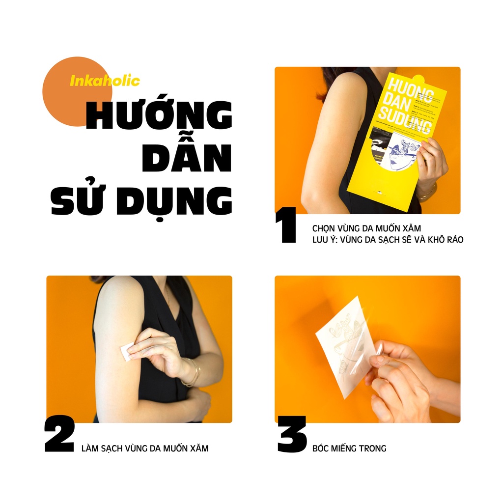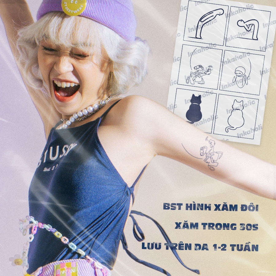 [LOVERS Collection] Inkaholic hình xăm dán tạm thời Y HỆT xăm thật trong 15 ngày, 100% tự nhiên và chống nước free ship