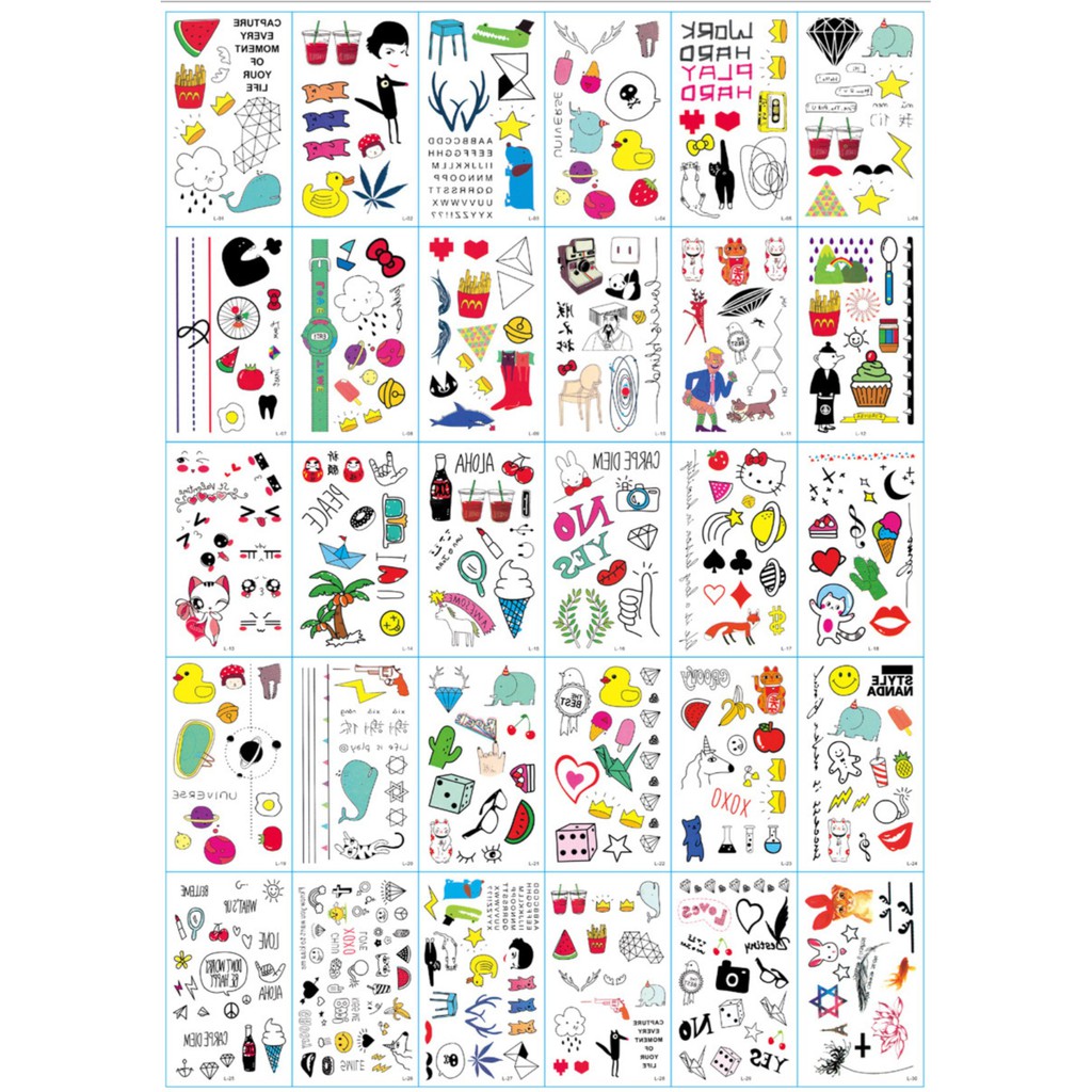 Freeship- Set hình xăm siêu đáng yêu cá tính mã L-01 nguồn hàng buôn sỉ (1 tấm) mua tại đây